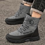 DAWSRi Men’S Mid Top Snow Boots, Windproof & Slip Resistant, Durable Faux with Thickened Plush Inner, PVC Outsole, Magic Tape Closure, Round Toe, Short Boot Height, All-Season Fashion