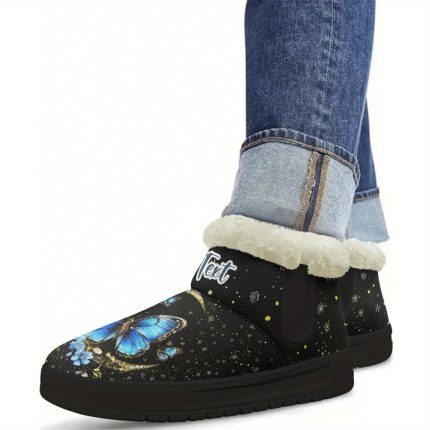 Moon and Butterfly Print Men’S Stylish Winter Ankle Boots and Snow Boots. Personalized Name Customization. Thickened Women’S Plush Snow Boots with Furry Shafts. Suitable for Hiking and Mountaineering, Winter Boots for Men, Winter Boots for Women, Winter Boots for Men High Quality, Snow Boots for Women, Winter Boots for Women High Quality, Mountaineering Shoes, Outdoor Footwear, Fashionable Ankle Boots, Moon And Butterfly Design, Durable EVA Sole, Warm Lining, Unisex Winter Footwear