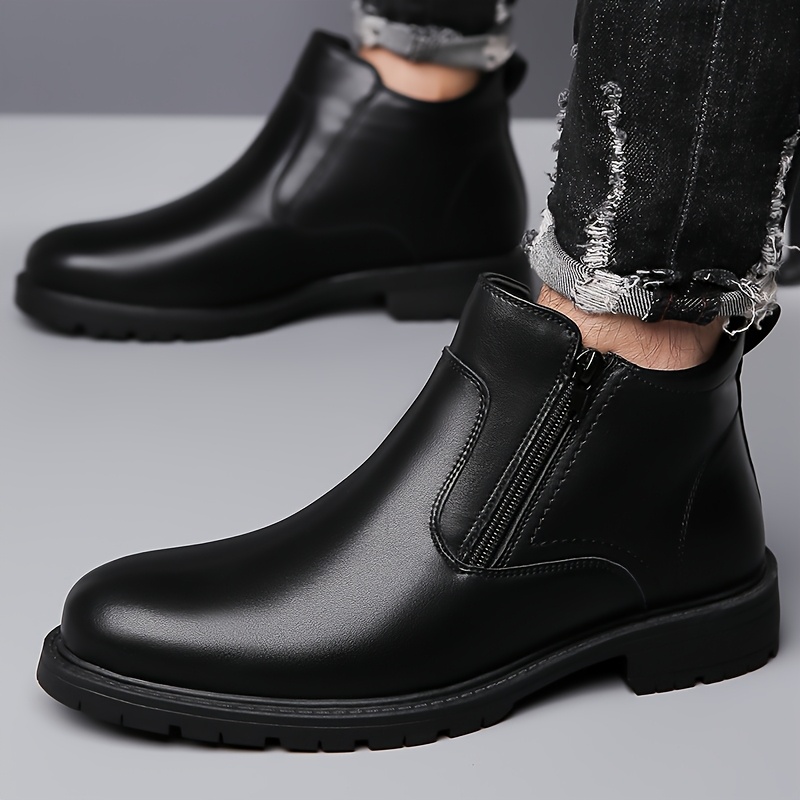COMFIDAILY Men’s Mid-Calf Chelsea Boots – Full-Zipper Closure, -Slip Rubber Sole & PU Cushioned Insole, Glossy Black (Microfiber) – Winter Warm Ankle Boots for Business, Office, Casual Wear – Round Toe Short, Men Pants, Fall Boots, Bottes, Botas, Botas De Trabajo Para Hombre, Mens Pants For Men, Vintage Boots, Christmas Boots, Boots For Men Winter, Retro Boots, Men Ankle Boots, Mens Shoesand Boots, Trainer Boots, Fashion Boots, Fall Bootts, Boots For Women Winter Non Slip,