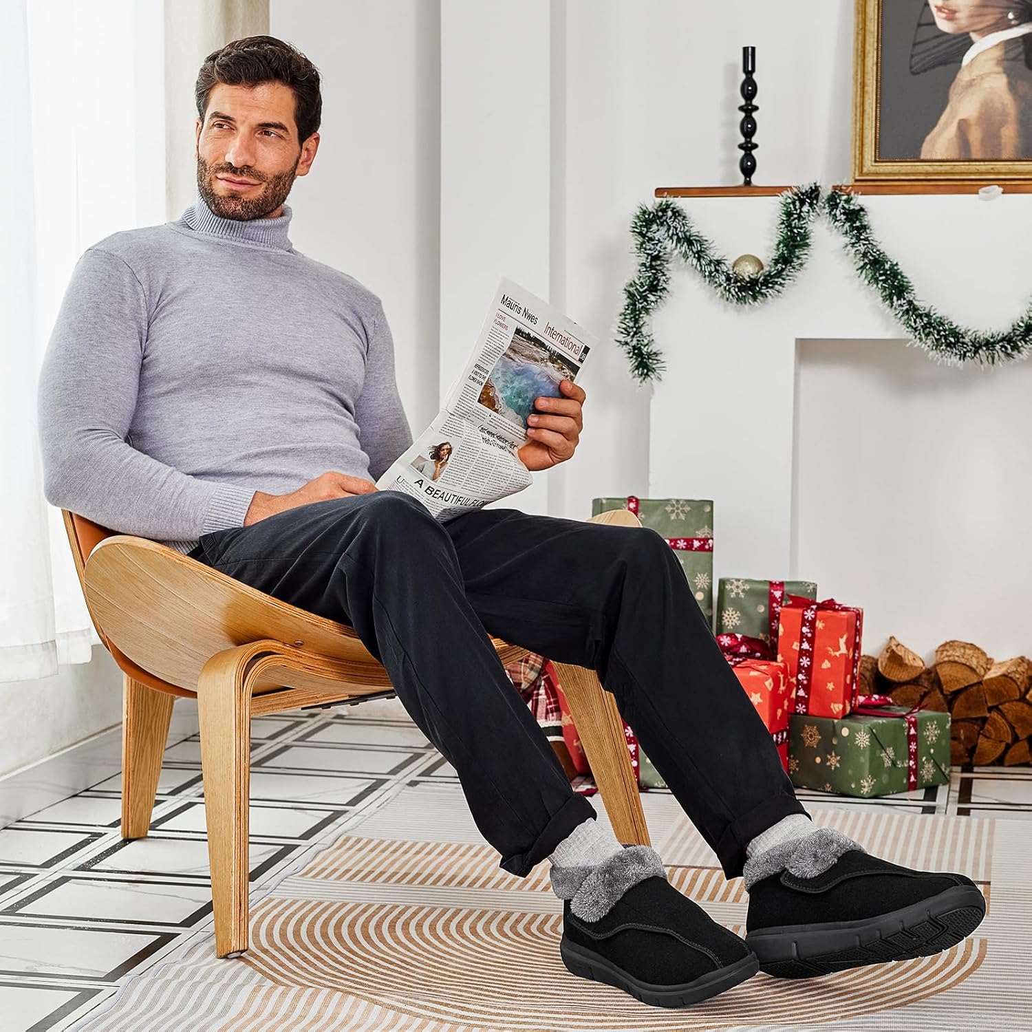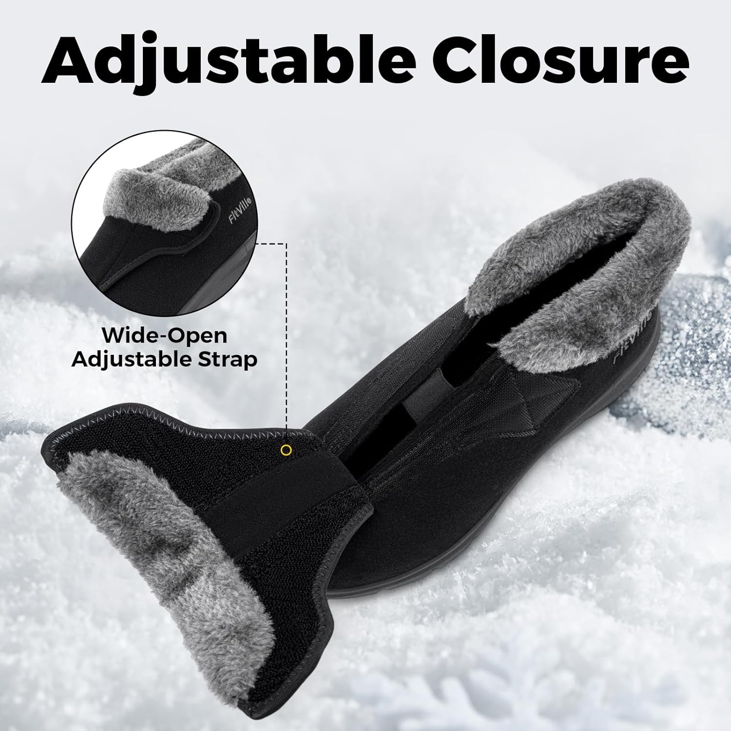 Fitville Men’s Wide Snow Boots – Slip-On Winter Shoes with Thickened, Adjustable Closure & Diabetic-Friendly Design – Lightweight Cold-Proof Short Boots for Ice, Snow, and u002FOutdoor Use (Black, Rubber Sole & Warm