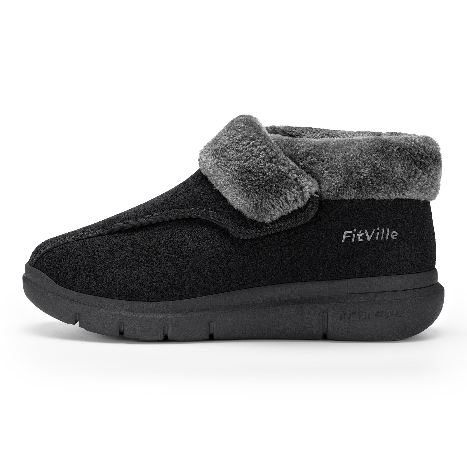 Home Men's Snow Boots Fitville Men’s Wide Snow Boots – Slip-On Winter Shoes with Thickened, Adjustable Closure & Diabetic-Friendly Design – Lightweight Cold-Proof Short Boots for Ice, Snow, and u002FOutdoor Use (Black, Rubber Sole & Warm