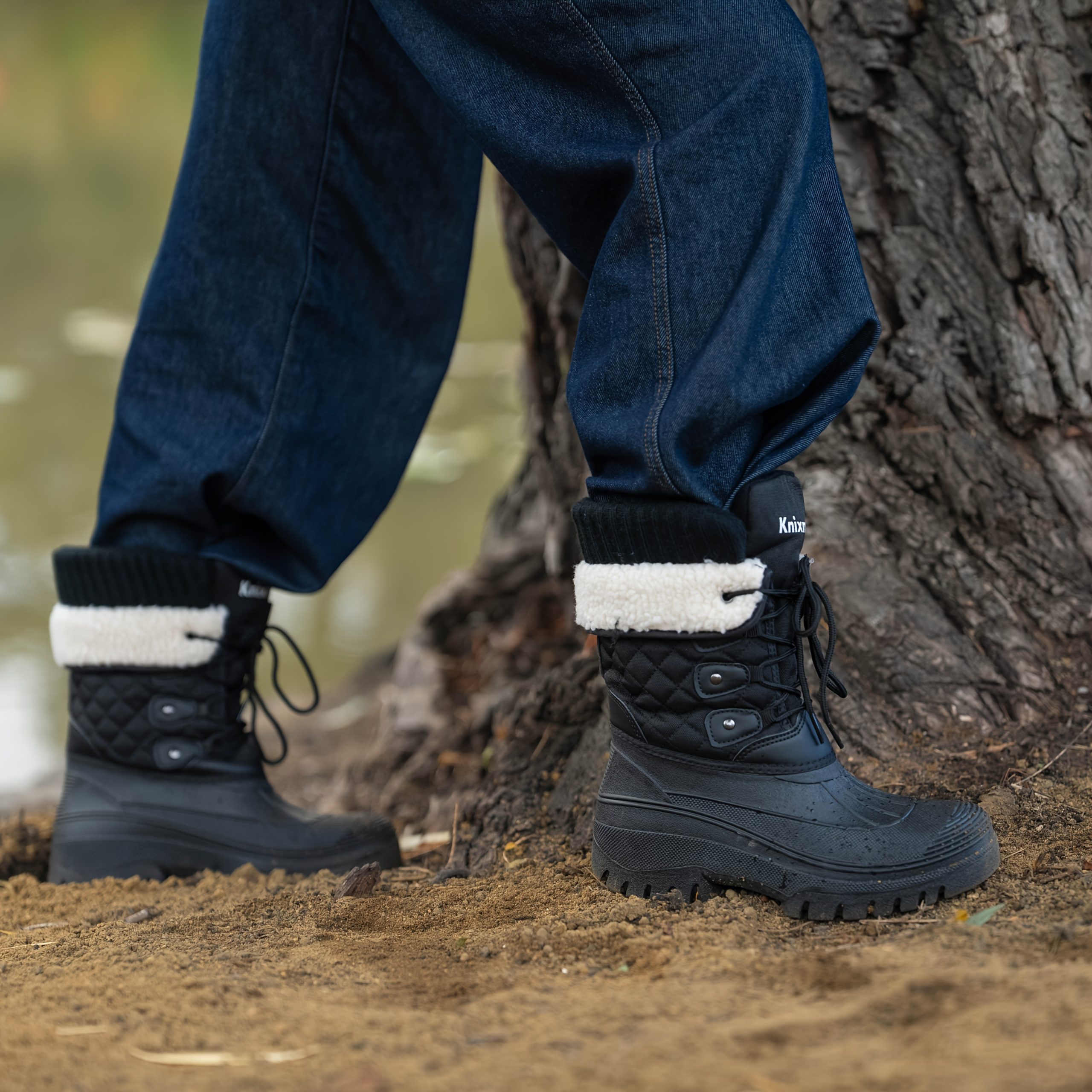 knixmax Men’s Extreme Cold Weather Winter Boots – Warm Fluffy-Lined High Quality Ankle Support Snow Boots with Non-Slip TPR Soles for Hiking, Trekking, Gardening & Outdoor Activities (Black), Trekking Footwear | Durable Pu Upper, Winter Shoes
