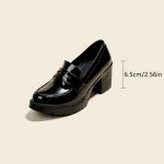 Ladies’ Platform Loafers for Spring 2025, Featuring a British Style with Chunky Heels, Black Round-Toe Faux Leather Shoes That Are Versatile And Comfortable, Suitable for Casual Wear And Work.