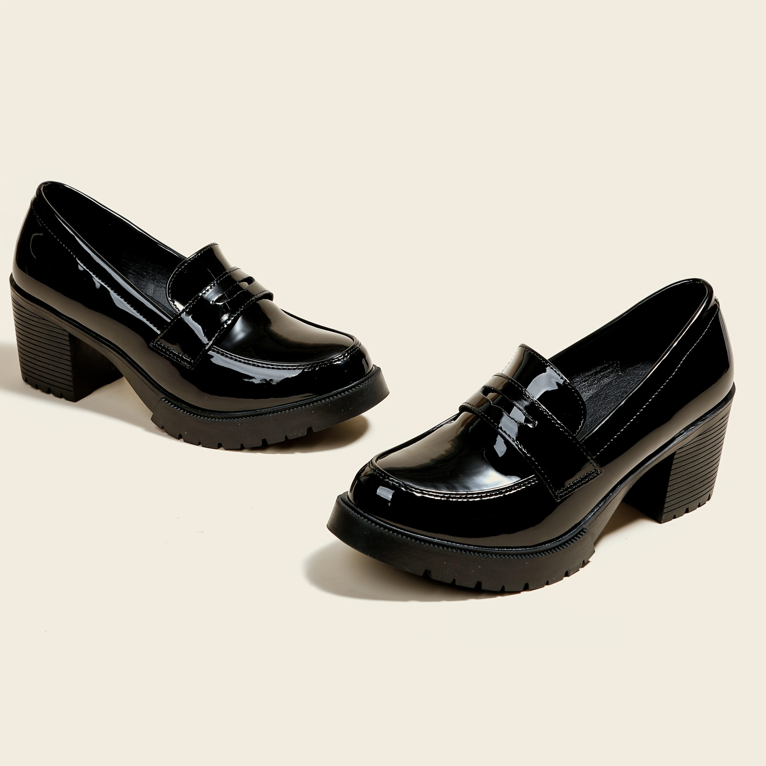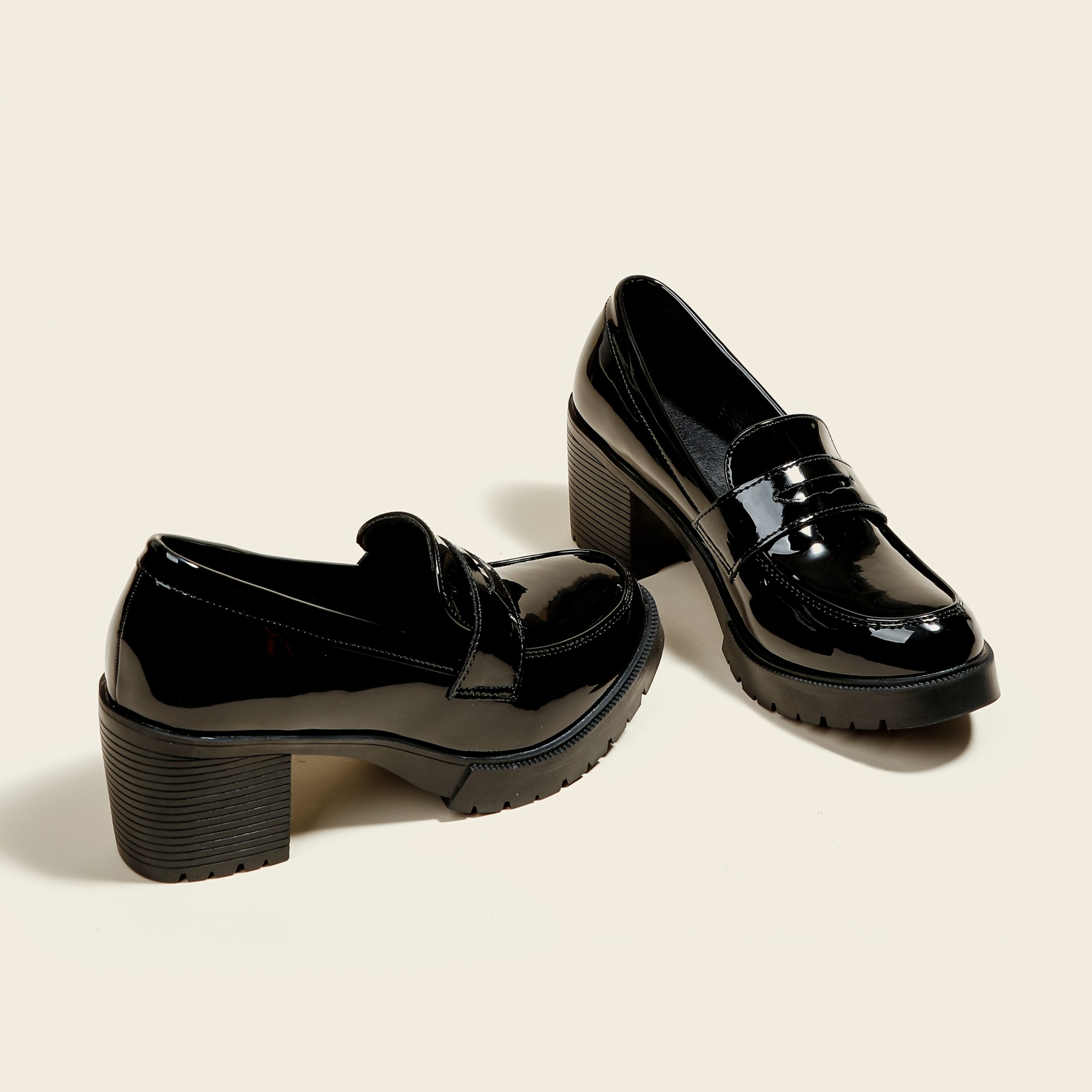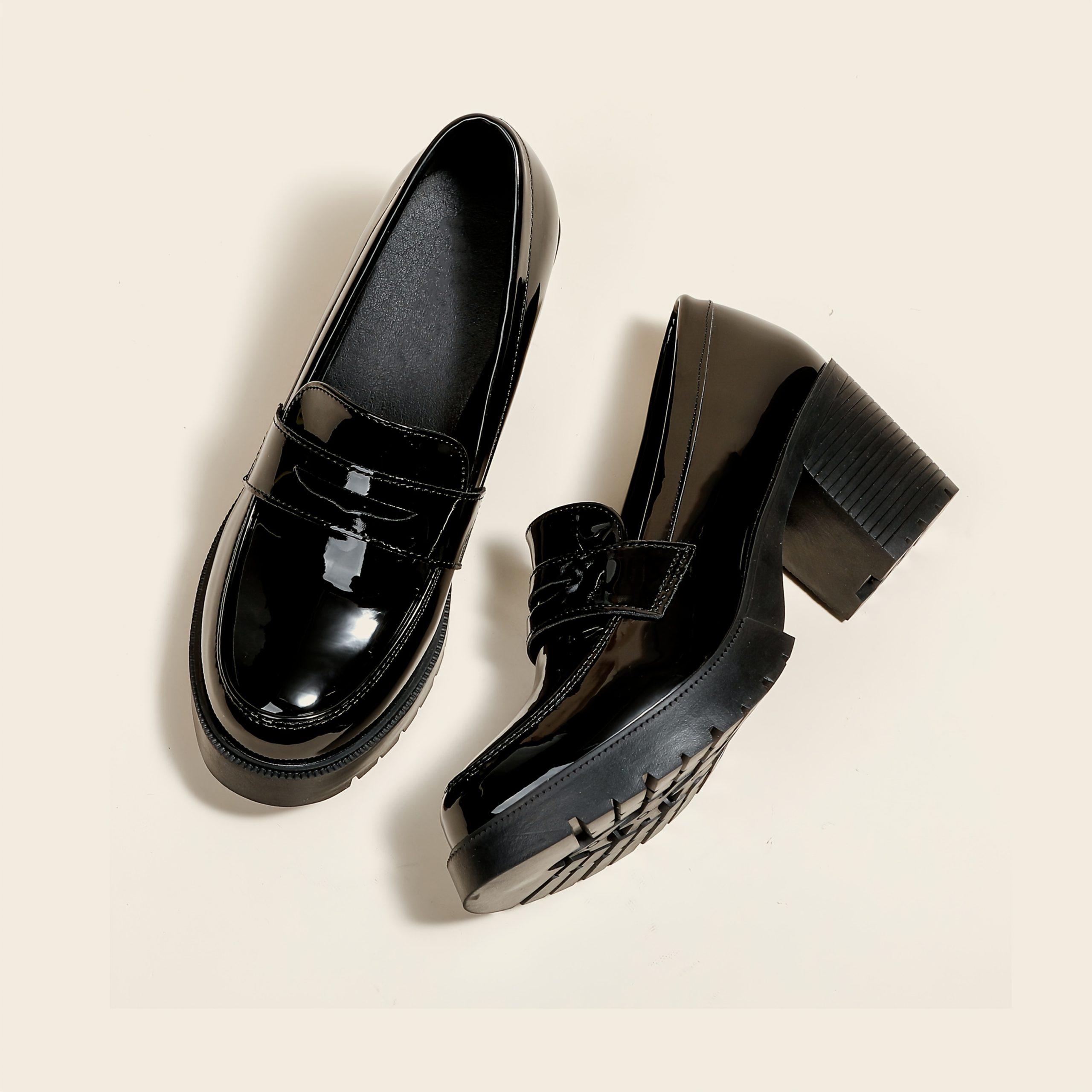 Women’S Dressy Slip-On Loafers – Penny Style Platform Shoes with Chunky Heel | Versatile Work-to-School Shoes with Elevated Style