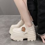 Women’s Loafers with Thick Platform – Slip-On Shoes in Black & White, Cushioned Insole & Non-Slip Rubber Sole for Everyday, Formal, Special Events – All-Season Women’s Footwear, Chunky Shoes, Stylish Tassel Accents, Comfortable Pu Sole