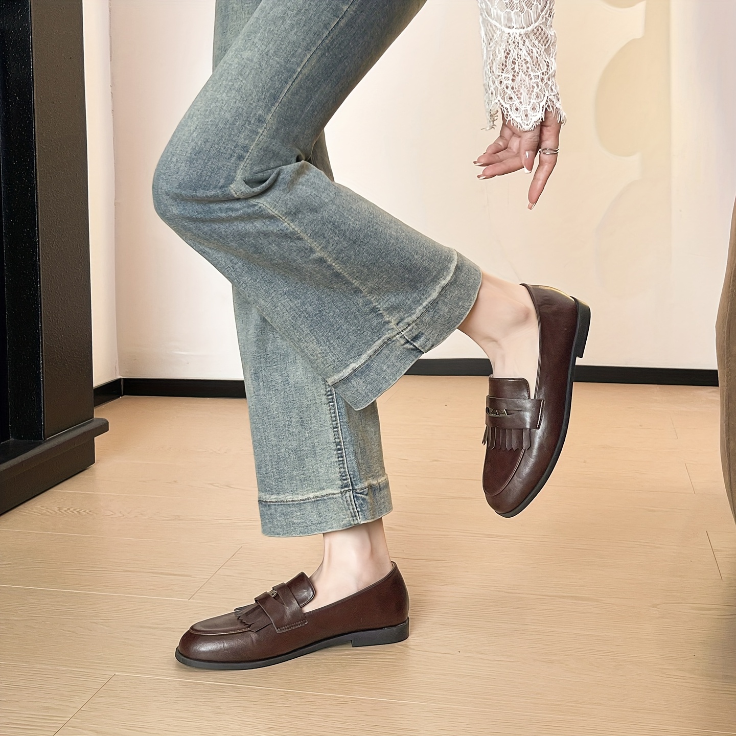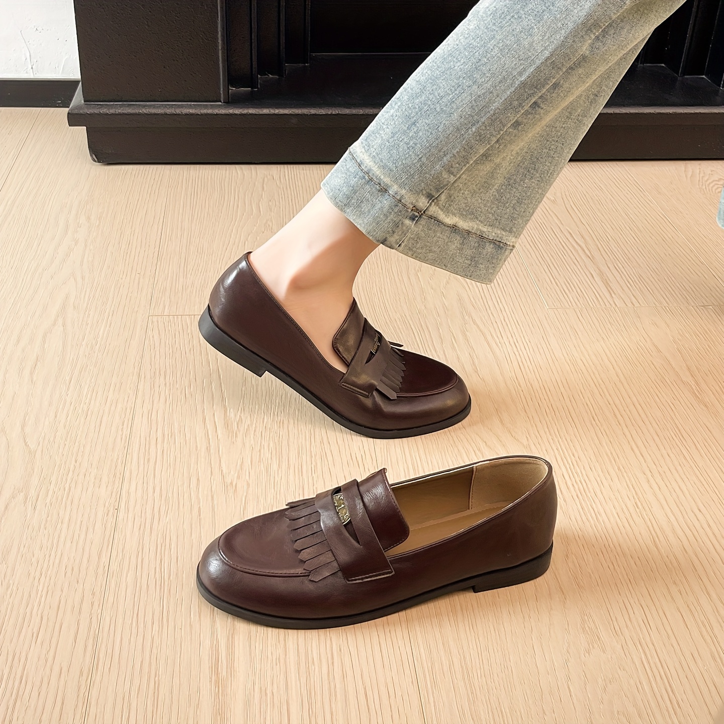 Women’S British Retro Loafers – Slip-On Round Toe Tassel-Adorned Moccasin Shoes with Arch Support, Soft Cushioned Insole & Non-Slip Rubber Sole – All-Season Comfortable, Versatile For Casual, Office, Office Footwear, Classic Design
