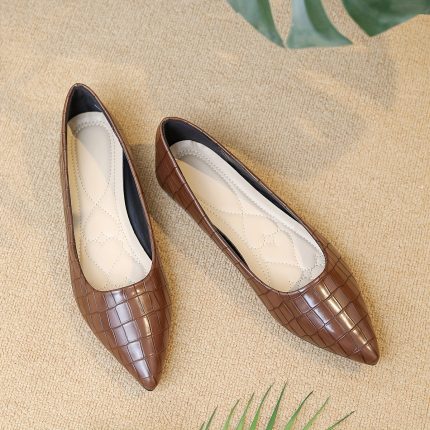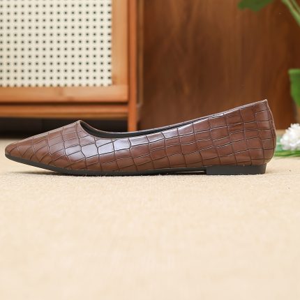 Women’S Elegant Pointed Toe Flats – Slip-On Shoes with Cushioned TPU Sole, All-Season Formal & Casual Footwear in Beigeu002FBrown, Synthetic Cover for Office, Parties, Everyday – Easy-Clean Women’S Dress Shoes, Ladies Shoes, Party Footwear, Crocodile Pattern Design, Durable Comfort Sole, Office Wear, Stylish Flats, Comfortable Lining, Professional Women